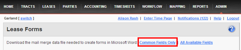 On the Lease Forms screen, click either the Common Fields Only or All Available Fields link at the top right.