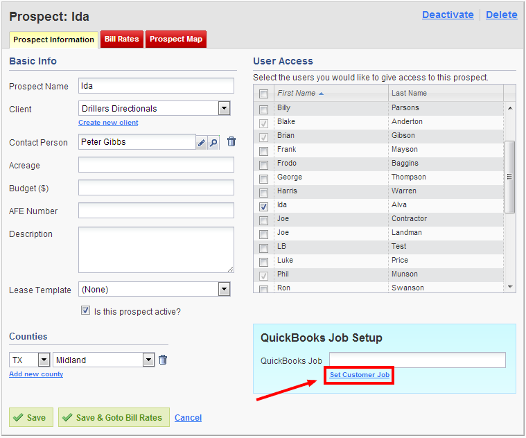 Before you can export invoice data for a Prospect to QuickBooks Desktop, you must link the Prospect to a Customer Job in your QuickBooks company file.