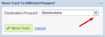 If you need to move a tract to a different prospect, simply click on the Move link in the page header and select the destination prospect. All attached leases and timesheets will automatically be moved to this new prospect as well.