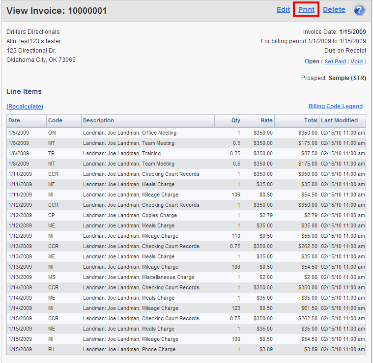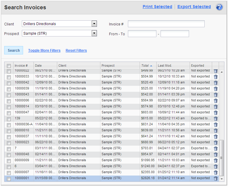 When printing multiple invoices at one time, the "Include Coversheet" option will add a sheet to the front of the report that summarizes the invoice and associated charges. This can be very useful when invoicing multiple prospects for one client.